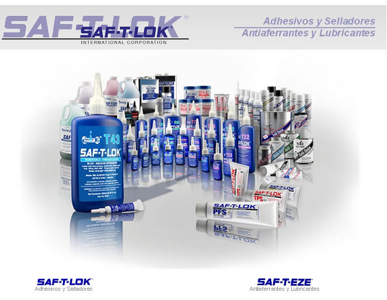 Los fijadores, retenedores, selladores y adhesivos, SAF-T-LOK, confiablemente fijan, retienen, sellan y unen un amplio rango de aplicaciones, el aflojamiento y la separación de los componentes es eliminado de los ensambles, minimizando costos tiempos muertos y previniendo daños al equipo, ocasionados por vibración o impactos. LA SELECCIÓN CORRECTA DEL PRODUCTO: Previene el aflojamiento de las partes. Elimina fugas de líquidos o gases. Reduce el costo de los ensambles. Incrementa la efectividad en el equipo. Es removible. La selección correcta de los productos de SAF-T-LOK, dará como resultado los siguientes beneficios: